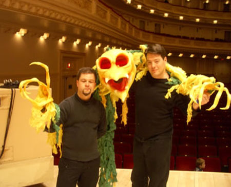 How do you get to Carnegie Hall? For me, it took a lot of very tall puppets and a cast of friends to operate them behind the orchestra so they could be seen. The best seat was the highest balcony so you could watch the performers madly running around behind the musicians.